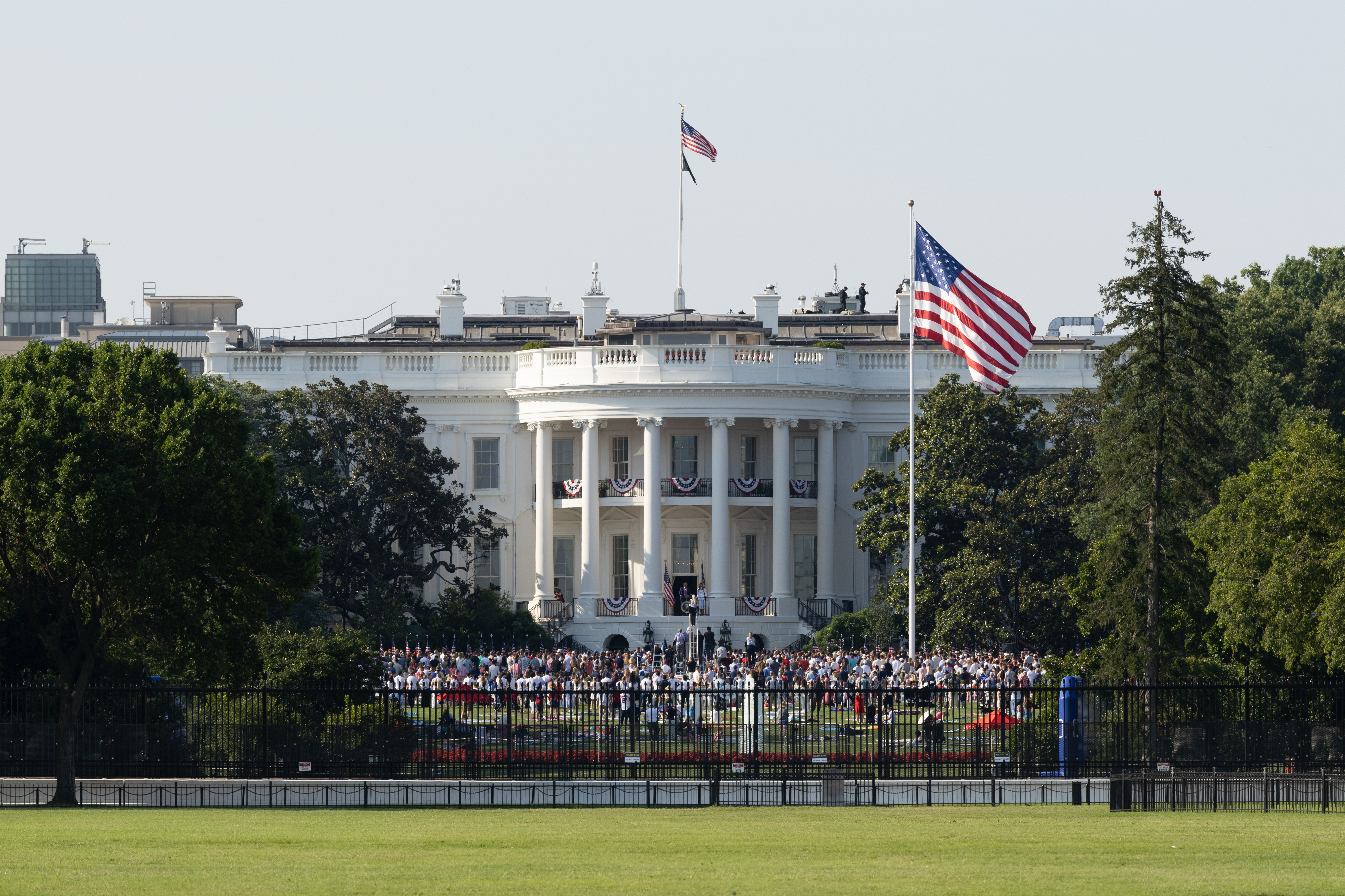 7月4日,在美国首都华盛顿白宫,美国总统特朗普发表讲话。新华社记者胡友松摄